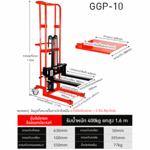 ทำไมต้องเลือกรถยกสูง GGP? ✅ แข็งแรงทนทาน รับน้ำหนักได้ถึง 400 กก. ✅ ใช้งานง่าย เพียงโยกก้าน ไม่ต้องใช้ไฟฟ้า ✅ บำรุงรักษาน้อย ประหยัดค่าใช้จ่ายระยะยาว ✅ หลากหลายรุ่นให้เลือกตามการใช้งาน (GGP-01 ถึง GGP-35)