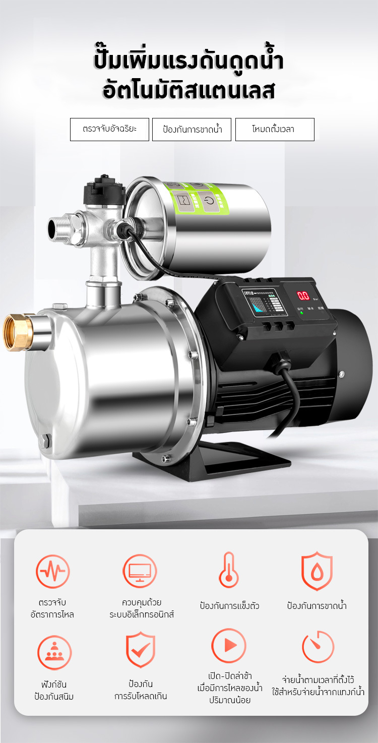 • ระบบป้องกันการทำงานเมื่อไม่มีน้ำ – ยืดอายุการใช้งาน